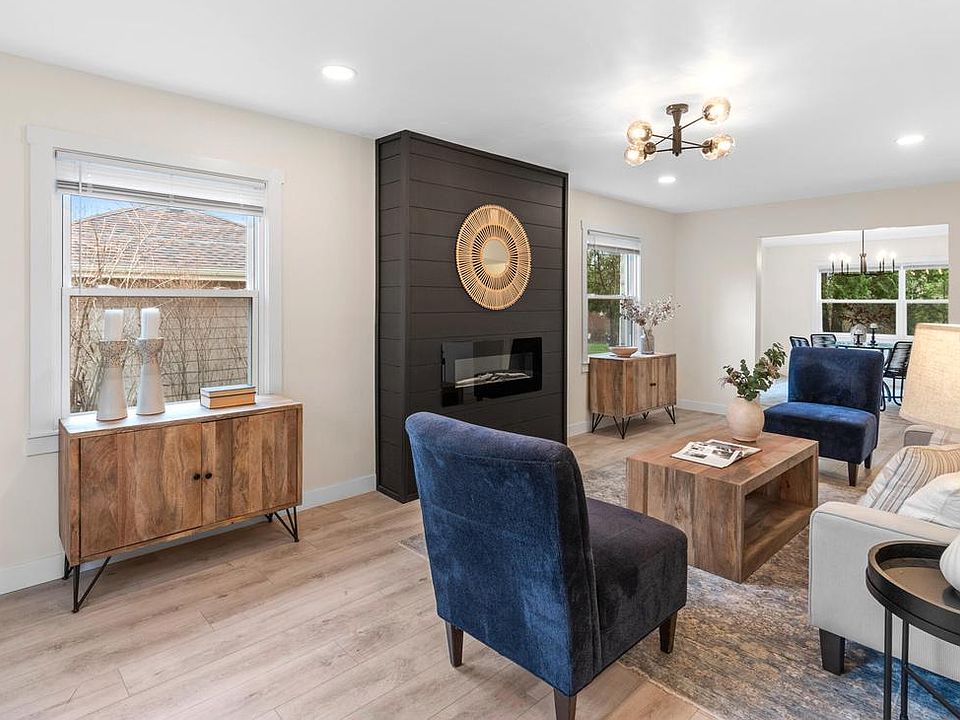 Light-filled and freshly updated, this charming home is nestled in highly desirable Fox Point neighborhood. Updates include new windows, flooring and updated baths. Enjoy a spacious living room with a new fireplace, and a large dining room featuring built-in storage and beverage center with refrigerator. The brand-new kitchen boasts stainless steel appliances, quartz countertops, and a modern, functional layout. Three bedrooms are conveniently located on the main level, while the fully remodeled lower level offers a generous rec room, a den or office space, a large laundry room, and a second full bath--perfect for flexible living. Move right in and enjoy comfort, style, and space in a sought-after location! 2 blocks west of Lake Dr-fun area to walk in!