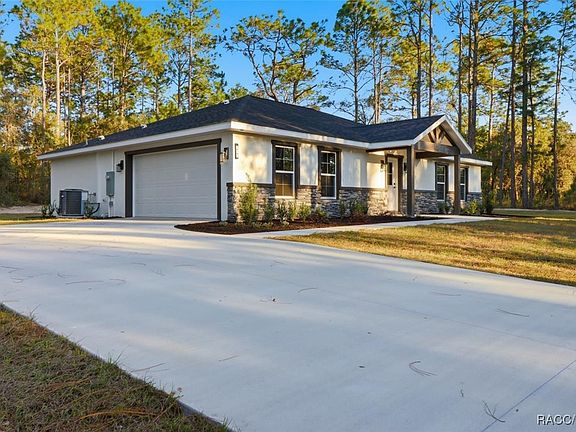 Stunning New Construction Home in Citrus Springs! Discover a rare opportunity to own this brand new 3-bedroom, 2-bathroom home situated on an expansive 1-acre lot in the highly desirable Citrus Springs community. Built in 2025, this residence has never been lived in, offering a pristine canvas for your personal touch. As you approach, you'll be greeted by a charming gable front entry adorned with elegant stack stone, setting the stage for the beauty that lies within. Step inside to find a spacious open floorplan, enhanced by luxurious LVP flooring that seamlessly flows throughout the living spaces, creating a warm and inviting atmosphere. The heart of the home features a modern kitchen with granite countertops, along with an island with bar top seating. The master suite is a true retreat, boasting a luxurious tiled walk-in shower, while the guest bathroom offers a stylish tiled tub shower for added convenience. Additional highlights include a side entry garage that provides both functionality and curb appeal, along with ample outdoor space to enjoy the natural beauty of your private 1-acre lot.