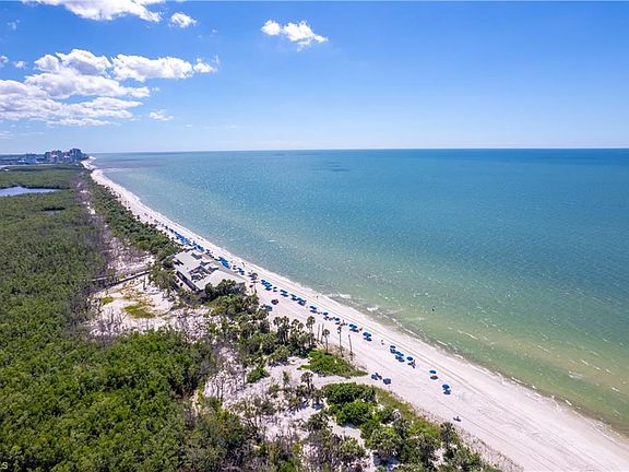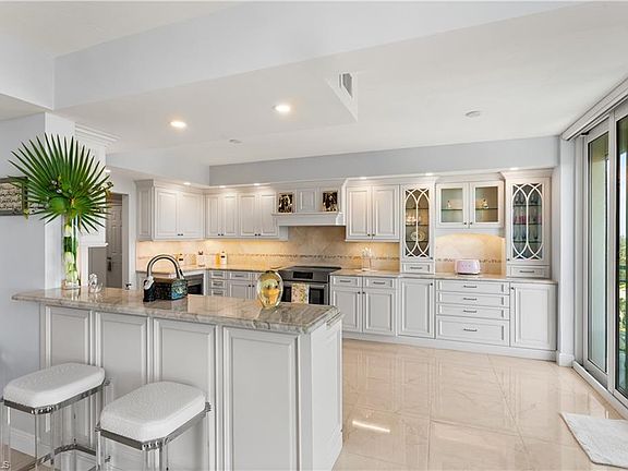Welcome to Residence 19B at The Claridge – a sky-high sanctuary, designed for your most discerning buyers. Perched on the 19th floor, the moment you step in this reimagined 2-bedroom, 2-bath residence offering Stunning, Sweeping, Unobstructed Gulf views from the floor to ceiling glass! Direct Western Exposure as well as Beautiful Sunrise Bay views from the East...the best of both views! Enjoy spectacular Sunsets from the expansive 33-foot screened lanai (complete with electric storm shutters) and start your mornings with Sunrise Views from the open balcony off the kitchen. There are storm shutters or impact glass throughout the condo. Completely redesigned, this natural light-filled condo features elegant marble floors, a spacious open floor plan, Hunter Douglas shades throughout, Visual Comfort Crystal Signature Collection chandeliers in Master Bedroom, Dining Room, and 2 sconces in the Living Room. A few of the many upgrades include a newer fire alarm, water heater, garbage disposal, and electrical. The gourmet kitchen is a showstopper—crisp white cabinetry, glass cabinet fronts, beautiful stone countertops, under-cabinet lighting, recessed lighting, and a generous breakfast bar that flows seamlessly into the dining and living spaces, all with breathtaking east-to-west views. The Gulf-facing primary suite offers balcony access, a walk-in closet with auto on/off lighting feature, and a spa-inspired bath with dual sinks, a standalone soaking tub, Toto bidet, and a custom-tiled walk-in shower—your personal retreat after a day of sun and sand. The spacious guest bedroom is served by a beautifully updated full bath with a custom tile shower. The Claridge is a premier high-rise offering a welcoming lobby, on-site management, a newly updated community room with kitchen, card rooms, fitness center, guest suites, and a resort-style pool and spa. Located directly on the Pelican Bay berm, residents enjoy convenient tram access to the private beachfront pavilions. Pelican Bay Amenities (all included in your fees): ~Private beach access with beach attendants, chairs, umbrellas ~Beachfront indoor and outdoor restaurants ~Tennis and pickleball courts ~State-of-the-art fitness center ~Miles of walking and biking trails Location Highlights: Just minutes to Waterside Shops, Mercato, Venetian Village, Whole Foods, Artis—Naples, and a short drive to downtown Olde Naples. Only 30 minutes to the airport. Whether you're looking for a full-time residence or seasonal escape, this is the perfect place to call home. Truly a must-see to appreciate the view, the finishes, and the lifestyle.