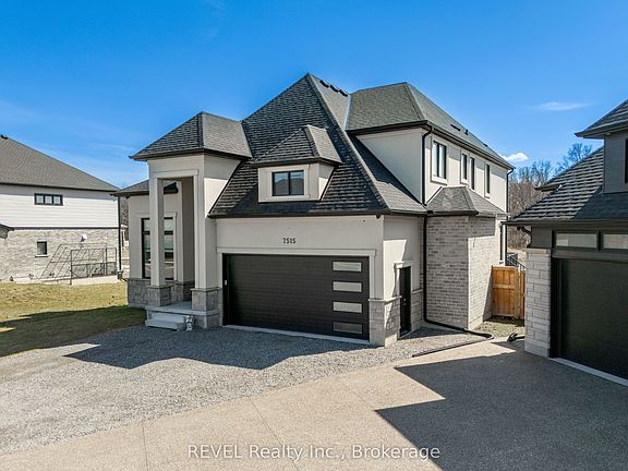 Luxury, style, and modern convenience define this stunning 2-storey stone & stucco home, built in 2022 and backing onto a tranquil retention pond. Thoughtfully designed with high-end finishes, this home boasts engineered hardwood flooring on the main and second floors, soaring ceilings, and oversized windows that flood the space with natural light.The open-concept main floor is perfect for both everyday living and entertaining. The spacious living room features an electric fireplace, while the chefs kitchen is a showstopper with extensive cabinetry, an oversized island with additional storage and seating, built-in appliances, and a striking herringbone backsplash. A butlers pantry with a prep sink adds functionality. A private office, 2-piece bath, and a mudroom with rear yard access complete this level.Upstairs, the primary suite offers dual walk-in closets and a spa-like 5-piece ensuite with a soaker tub and glass shower. Three additional bedrooms provide ample spaceone with a private 3-piece ensuite and walk-in closet, while the other two share a Jack & Jill 5-piece bath. A second-floor laundry room adds convenience.The finished basement (awaiting ceiling completion) features heated floors, a large rec room, oversized windows, and a 3-piece bath. This home is fully equipped with a built-in speaker system inside and out, a security camera system, and a sprinkler system for effortless lawn care.Outside, enjoy the fully fenced pie-shaped lot with a raised composite deck, perfect for entertaining. A oversized 2.5 car garage and a prime location in a growing Niagara Falls subdivision, close to shopping, amenities, and major highways make this home an exceptional opportunity.