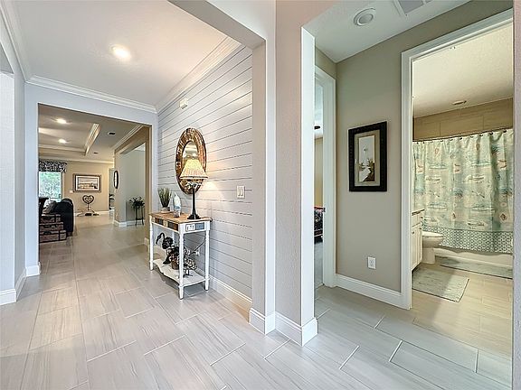 BETTER THAN NEW! This 2022 Medallion Floor Plan has ALL THE UPGRADES no longer offered by the builder. The EXPANSIVE SMART HOME boasts an open floor plan, 4 bedrooms & 3 full baths, and a spacious 3-car garage** SPECIAL FEATURES include Custom Closets, 8' TRIPLE SLIDERS leading out to the EXTENDED LANAI, 8' Doorways, 9' Ceilings with 10' trays make this an EXTRAORDINARY GEM. There are GORGEOUS LIGHT Colored Tiled Floors(12x24) throughout common spaces, water softener, and a generous primary suite. You'll ENTERTAIN IN STYLE with a Welcoming Foyer, Separate Dining Room, and a BRIGHT Timeless Kitchen with imported Italian porcelain backsplash. There is more... Upgraded Appliances, Pull-Out shelves, Center Island with seating, CUSTOM BUILT IN WINE BAR that extends cabinetry and counters a full 12'feet long. With LOADS OF STORAGE, there is room to tuck everything away and still have plenty of space to enjoy with family and friends! It's not just a HOME it's a LIFESTYLE UPGRADE! **It's your chance to live and Experience the TRIBUTARY WAY with Boat Launch; Resort Style Pool & Kiddie Pool; Clubhouse; Dog Park; Fitness Center; Jogging Path; Pickleball; Playground; and Tennis Courts. And the Community offers quick access to I-95, JAX AIRPORT, and AMELIA ISLAND BEACHES—JUST 25 MINUTES AWAY! Plus, Did I mention the PAID-OFF CDD bond... which makes this HOME very Appealing! Schedule your showing Today!