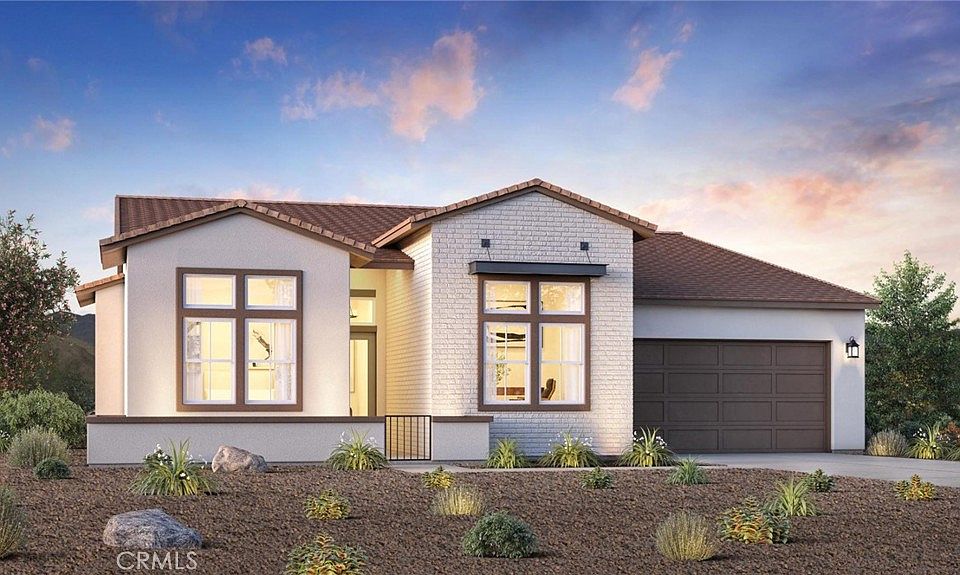 Welcome to Stella at University Park, a new community located in Palm Desert, which is close to Palm Springs. Homesite 134 is a new construction home that is situated at the corner of the community backing the mountain views. The Belltrix floorplan features 3 bedrooms, with 3 bathrooms, and is 2496 sq. ft, with a 2-car garage. Upon entering the home, you step through a small courtyard and enter into a dramatic two story foyer, the kitchen features a large island with plenty of work space, luxury two toned stained cabinets in Sabbia and Espresso. The primary bedroom is private and tucked in at the back of the home, while the two secondary bedrooms are located at the front of the home with ample light within the space. The office is centrally located for versatile living. Highlights of the home are bright open spaces, entertaining areas and large sliders leading out to the rear yard. The community amenities include two pools, pickleball and bocce ball courts, gym, dog park, plus a community room. Homesite 134, still offers the opportunity to select your flooring. Estimated winter close. Photos provided are of the model home.