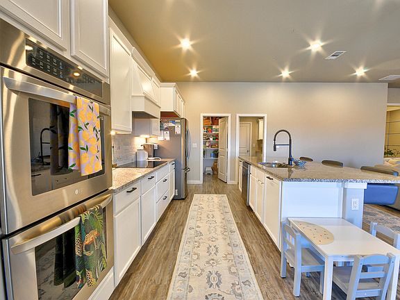 Low-maintenance turf backyardStainless-steel appliancesDouble ovensOpen-concept layout