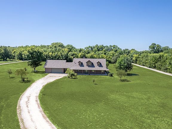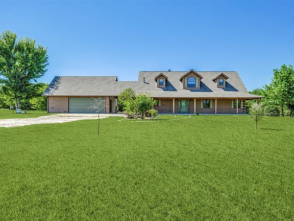Fall in love with this stunning, custom-built log home tucked away on 7.6 heavily wooded acres — perfect for horses, cattle, and anyone seeking privacy and natural beauty. A winding creek, expansive views, and tranquil surroundings set the stage for this rare retreat. Step inside to a dramatic open floor plan featuring a grand entry, soaring ceilings, and gorgeous solid hickory floors throughout. Walls of windows bring the outdoors in, filling every room with natural light. The heart of the home is an enormous family room centered around a two-story stone fireplace — a perfect place to gather and unwind. The gourmet kitchen is a chef’s dream, outfitted with a Viking six-burner cooktop, double ovens, granite countertops, and ample cabinetry. The spacious dining room is ideal for hosting, while the private owner’s retreat on the main level offers a peaceful escape with a cozy sitting area, spa-like bath, garden tub, separate shower, and generous walk-in closet. Upstairs, a versatile flex room provides space for a game room, secondary living space or whatever your lifestyle demands. The second level also features two large secondary bedrooms, walk-in closets, and a well-appointed full bath. Outside, enjoy a huge garage with built-in workspace and storage — ideal for hobbies, equipment, or ranch needs. Whether you’re raising livestock, entertaining guests, or simply savoring the peace of nature, this home offers the best of rustic charm and modern comfort.