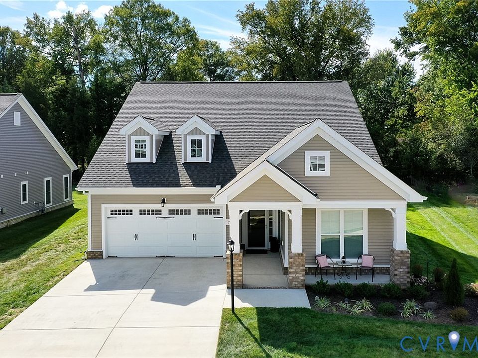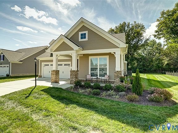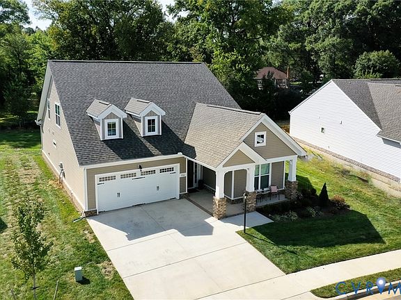 Flawless design, thoughtful details and a view that soothes the soul. This home is better than NEW! Stunning 3 bedroom, 3 bath patio home showcases tremendous attention to detail throughout more than 2000 sq ft thoughtfully designed living space.. Quality built by Eagle Construction in the sought after neighborhood of Settlers Ridge. This is an unheard of opportunity to purchase a home less than a year old. This gem was built for entertaining, the open-concept layout features LVP flooring, abundant recess lighting as well as upgraded fixtures that flow throughout the home. The elegant crown moulding gives a finished feel to the open concept living area. The chef’s kitchen is a showstopper with leathered white granite counters, herringbone tile backsplash, appealing Irish Cream cabinetry, stainless steel appliances, gas cooking and a center island perfect for large gatherings or the ultimate charcuterie spread! The first floor offers versatility with bedroom Two, ideal for a home office or additional main level bedroom. Rear-load stairs provide access to bedroom Three with its own en-suite bath - perfect for multigenerational living, grandkids or just a get-away space. As you travel this custom home don’t miss the thoughtfulness given to ensure there is ample storage. An additional bonus room upstairs is perfect for temperature controlled storage, art studio, office, craft room and more. Let’s talk about the stunning primary suite! It will take your breath away with its spa-inspired en-suite featuring upgraded tile flooring, frameless glass shower, custom cabinetry and more. Enjoy your morning coffee or evening cocktails on the screened rear porch overlooking an oh, so private rear yard. Need a working garage? You will find it here! A true fully finished two-car garage that can handle the largest of vehicles! 55+ community located near everything RVA to incldue James River, Virginia Cap Trai, Rocketts Landing, shopping, interstates and more. Low HOA dues. It really does not get better than this!