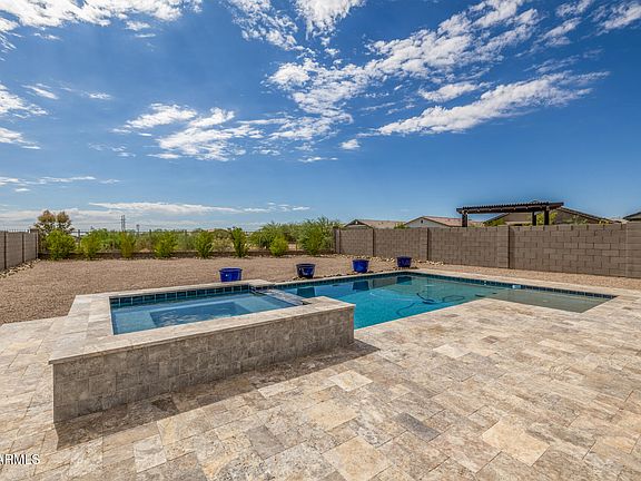 Enjoy Gold Canyon living with this upgraded 4 bed, 2.5 bath, 2,414 sq. ft. Oversized lot in Peralta Canyon. This move-in-ready property offers a private backyard retreat with a newer pool, spa, upscale hardscape, & lush landscaping—plus added privacy with no neighbors behind. Inside, the open floor plan features soaring ceilings, abundant natural light, & a sleek kitchen with quartz countertops, stainless steel appliances, & tile floors in the main living areas. Bedrooms include plush carpet for comfort, while the 3-car tandem garage provides valuable storage.