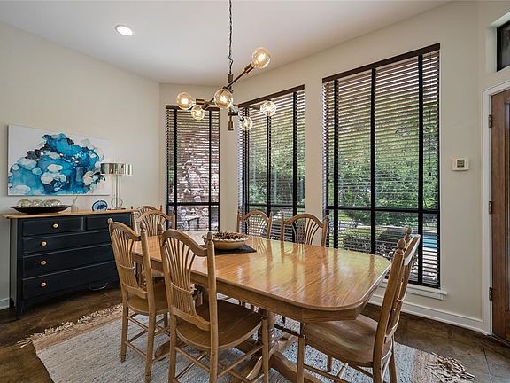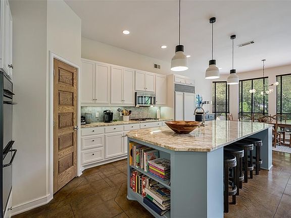 Built by the owner, quality abounds in this stylish, beautifully designed home! Situated on an oversized creek lot, enjoy panoramic views of towering trees and lush landscape! Oversized rooms and open floor plan! Solid oak doors throughout the home! Dual staircases. The kitchen and main living areas feature dramatic scored, concrete flooring and soaring ceilings! Dream kitchen with upscale appliances including a 5 burner Bosch gas cooktop, Sub-Zero refrigerator, GE Profile double ovens, beautiful granite countertops, huge island and breakfast bar, light cabinetry, walk-in pantry, tons of storage space, and transitional light fixtures. Adjacent breakfast room has backyard views and patio access. The large great room opens to the kitchen and has a wall of windows to take in the views and a handsome floor to ceiling fireplace with glass chips. Cozy study with brick walls and wood flooring! The master is a wonderful retreat having an adjacent 9x11 sitting area with access to the patio, incredible bath with heated plank tile flooring, quartz countertops, free standing tub, separate shower, dual vanities, walnut cabinetry, limestone wall tile, and a custom walk-in closet with built-ins. On the upper level, there is a game room and 3 additional bedrooms having recently installed carpet and walk-in closets. Oasis backyard has a large wood beam covered patio, woodburning fireplace, built-in grill and smoker, large pool with attached spa, and incredible views! Wi-Fi irrigation controller, drip irrigation in beds, and landscape lighting! Community features include a clubhouse, community pool, playground, walking trails, and tennis courts! 2022-07-05