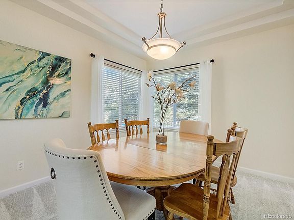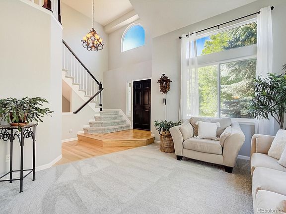 You Found It! This beautifully maintained two-story home resides within a cul-de-sac in the highly desired Terra Ridge subdivision in Lone Tree just minutes from trails, parks, expansive open space, highly-rated Douglas County schools, shopping, restaurants & more! A volumed two-story ceiling invites you into the open and light entry. On the main level you’ll find a comfortable living room open to the upstairs above. With a formal dining room with mountain views, kitchen with granite counters, Bosch Stainless steel appliances, under cabinet lighting, custom backsplash, upgraded fixtures & breakfast nook with access to large rear trex deck, lighting & pergola; powder room; family room with gas log fireplace with stunning hardwood floors throughout. The primary bedroom is spacious, featuring pergo floors & an elegantly remodeled five-piece en-suite bathroom with jet tub, double vanity, glass shower & unobstructed mountain views! Upstairs also features three additional secondary bedrooms that share an updated full hallway bathroom. Step down to the finished basement with a media room, 3/4 bath with steam shower, garden level windows, storage & laundry room. Other notable features include upgraded Presidential Woodmoor roof, new windows, water softener & filter, interior/exterior paint, high quality carpeting with upgraded pad throughout, refinished hardwood floor, 3 car garage with side door, custom trex deck, lighting & pergola. The large & spacious backyard is lush with professional landscaping, beautiful mature trees, a cherry tree that produces the most delicious cherries & sand box area. This place is made for easy alfresco dinners but also just begs for a BBQ w/ beautiful sunsets & mountain views on the deck. Come make this your home! Website/3D Tour Click Here: 7517-Indian-Wells-Lane.htour4u.com