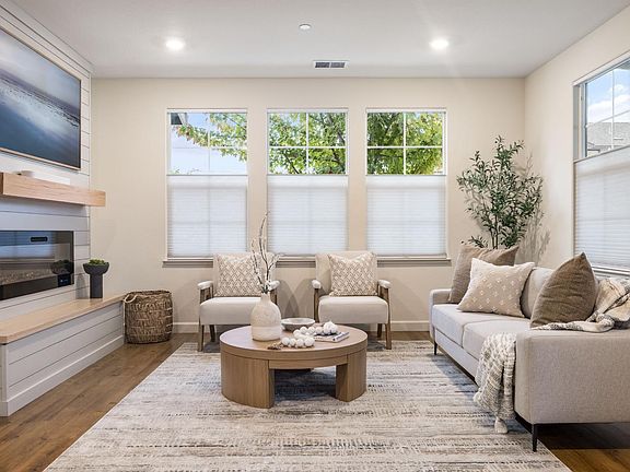 Stunning Willowglen home, corner lot, built in 2019, offers a spacious floor plan filled with natural light. This 4-bed, 3-bath home includes a ground-floor bedroom with adjacent full bath, ideal for guests or multi-generational living. Open-concept living area showcases gorgeous engineered hardwood floors, high ceilings, expansive windows, and a sleek modern electric fireplace. Gourmet kitchen w/abundant cabinetry, ample storage, slab counters for meal prep & entertaining, stainless steel appliances, and a center island. Upstairs, the luxurious primary suite creates a serene retreat with a spacious walk-in closet, soaking tub, double vanities, modern fixtures, and soft finishes. Enjoy indoor/outdoor living with a welcoming front porch, low-maintenance yard with turf and pavers, and a retractable shade awning for year-round comfort. Garage entry is located on a shared drive, creating a safe, low-traffic area where neighbors and kids gather to play. Additional highlights include central heating and A/C, an upstairs laundry/utility room, durable cement board siding, and more. Willowglen is a well-maintained community anchored by Maurice Fredericks City Park, featuring a playground, half-court basketball, dog park, and open green space. Love where you live.