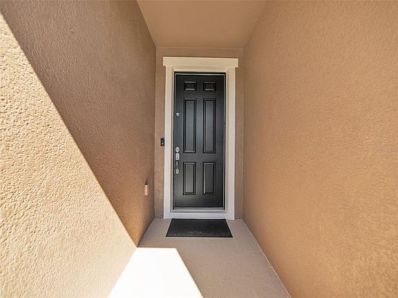 One or more photo(s) has been virtually staged. Impressive Gibsonton home situated on a gorgeous conservation lot with no front neighbors. You will find your long awaited and sought-after Florida dream home. All your new home awaits is your personal décor. 4 bedrooms, 2 bathrooms, 2 car garage. KB Built home. Freshly painted exterior, landscaped front yard with concrete curbing, palm trees, and outdoor lighting. The well designed split bedroom floor plan maximizes privacy with its private master retreat in the back of the home. The secondary bedrooms are located towards the front of the home, along with the laundry room for added convenience. The entry hallway opens up to a huge great room, dining space and kitchen with ceramic tile flooring. The entire living space opens up with sliding glass doors out to the large covered screened patio that's perfect to watch the sunrise across conservation. Lots of natural light in this home with the 9' ceilings and windows around the home. The oversized kitchen with island with stone access, 42" maple cabinets, with hardware, stone backsplash, black stainless range with double oven, black granite counter top, double bowl sink with black pull down faucet, recessed lighting, walk in pantry, pendant lighting. The oversized master suite offers a walk in closet, en suite bathroom with maple cabinets with nickel hardware, gentleman's height vanity with two sinks, chrome faucets and light fixtures, ceramic tile floor. Walk in shower with crown frame, soaking tub. The secondary bedrooms share a bathroom with a tub/shower combo, with maple cabinets with nickel hardware, crome light and faucet, ceramic tile flooring. Ceiling fans included. Washer and dryer in laundry room included, maple cabinets above washer and dryer are perfect for storage. Fully fenced backyard. No CDD fee's and low HOA fee's. Refrigerator, dishwasher and range 2023.