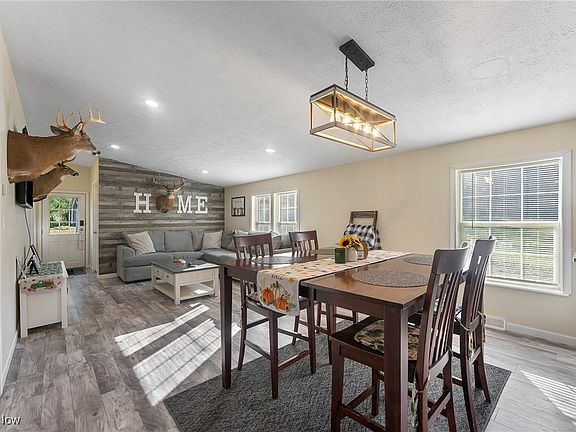 Welcome to 7518 Youngstown Salem Rd in Canfield! This beautifully updated 3-bedroom, 2-bath home sits on 11.5 picturesque acres in the Canfield Local School District. Step inside to find an open floor plan with a stunning kitchen featuring granite countertops, stainless steel appliances, tile backsplash, and a large center island that flows seamlessly into the spacious dining and living areas. The primary suite is a relaxing retreat with an en suite bathroom accented by a charming sliding barn door and a double vanity. Two additional bedrooms and a second full bath provide plenty of space for guests, a home office, or whatever suits your lifestyle. Convenient first-floor laundry, fresh paint, new flooring, updated lighting, and many more thoughtful updates make this home completely move-in ready. Outside, enjoy a large deck overlooking your serene property — perfect for entertaining or unwinding at the end of the day. A massive 28x32 garage with two bays and a generous storage/workshop area is ideal for vehicles, equipment, or hobbies. This home is a must-see — schedule your showing today!