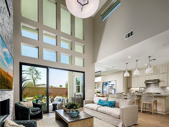 Welcome to Stella at University Park, a new Toll Brothers community located in Palm Desert. Homesite 54 is a new construction Pulsar floorplan which features 4 bedrooms, 3.5 bathrooms and is 3,357 sqft. with a 2-car garage. Upon entering the home, you will take notice of the dramatic 2 story foyer leading to the expansive great room with 20' ceilings. The kitchen features plenty of counter space and natural light with a central island and stainless steel JennAir appliances and walk-in pantry. The primary bedroom is also on the first floor with an ensuite bath featuring dual vanities, soaking tub, and a large walk-in closet. The 3 guest bedrooms are located upstairs with one bedroom adjacent to the large loft featuring a private ensuite bathroom. Highlights include a dedicated office space on the main level and a central covered rear patio with a 20' ceiling. University Park includes a new community center with pools, spa, fitness center, pickleball, bocce ball and is close to world class restaurants and shopping. Homesite 54 has an estimated closing date in Fall/Winter 2026. Photo provided is a rendering of the home that is under construction and exterior color schemes may vary.