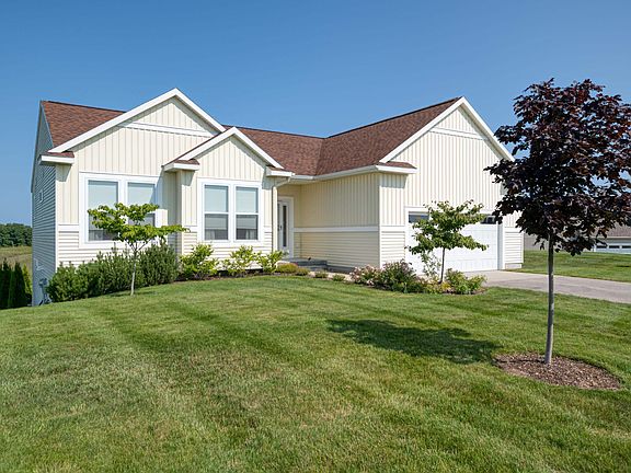 Welcome Home to this well maintained, energy efficient Ranch built in 2017 by Sterling Homes and Land. The Meadows in Elmwood Township of Leelanau County is located only 8 miles from downtown Traverse City. Its comfortable floor plan features main level living with 9 ft ceilings, a primary suite with private bath and walk-in closet along with 2 additional bedrooms and a guest bath. The walk out lower level is finished with tongue & groove ceilings, full bath, 4th bedroom with an egress/daylight window and wet bar. Unfinished room in the lower level offers a nicely sized storage area. Quartz countertops accent the baths and kitchen beautifully. The Meadows features large, expansive lots allowing for gorgeous countryside views and generous space between homes. This .74 acre lot has underground irrigation and lovely landscaping with a meticulously manicured lawn. Two patios and a covered porch are awaiting your outside enjoyment. The Meadows is well developed with wide roads throughout along with walking paths for the residents. DTE is in process of bringing natural gas to The Meadows. The accuracy of all information, regardless of source, is not guaranteed or warranted. All information should be independently verified.