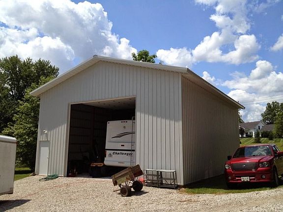 Country affordable home on 1 acre of ground ready to move into today. 32x40 barn perfect for large motor coach, boat or other large vehicles. Relax on your beautiful deck with remote awning while looking over your rolling wooded lot. The home features many updates including furnace 2013, sun porch C/A new electrical 2011, roof 2009, vinyl clad windows 2008 and updated kitchen. Hardwood floors and large 11x23 living room plus formal dining adds to the cozy feeling of this home. Full front porch, vinyl siding plus basement makes this home a great buy for the price. Call today to view.