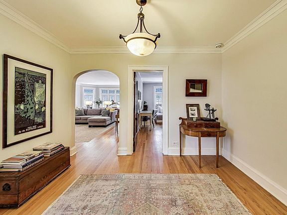 Vintage elegance meets modern comfort! This extra large, sun-soaked 3 bedroom, 2-bath condominium offers nearly 2,000 sq. ft. This is a rare find, blending timeless character with thoughtful updates. Stunning leaded glass windows, gleaming hardwood floors, and a charming decorative fireplace set the tone in the inviting living room. A gracious formal dining room is perfect for entertaining, while generous room sizes offer exceptional versatility. Three state of the art, ultra quiet smart window A/C units keep the entire home cool and comfortable creating the feel of central air without sacrificing vintage charm. Enjoy the convenience of an in-unit, top of the line washer and dryer and the security and ease of a garage parking space. With abundant natural light, classic architectural details, and a spacious, flowing layout, this home offers both sophistication and comfort in one perfect package.