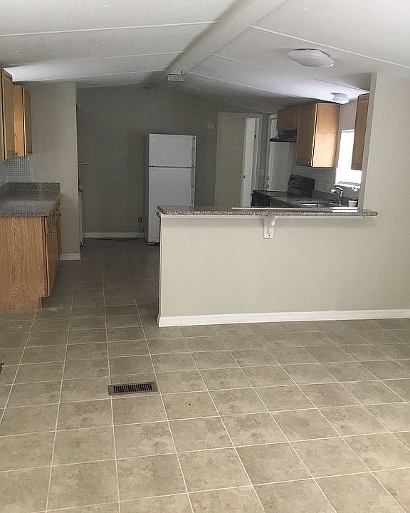 This mobile home has recently been beautifully remodeled. It has a brand new subfloor. Durock and tile on the entire house. New baseboards throughout. New cabinets with granite countertops in kitchen and both bathrooms. Kitchen also has backsplash. New rear deck and front porch. New electrical outlets and new electrical box