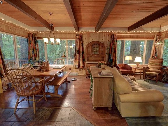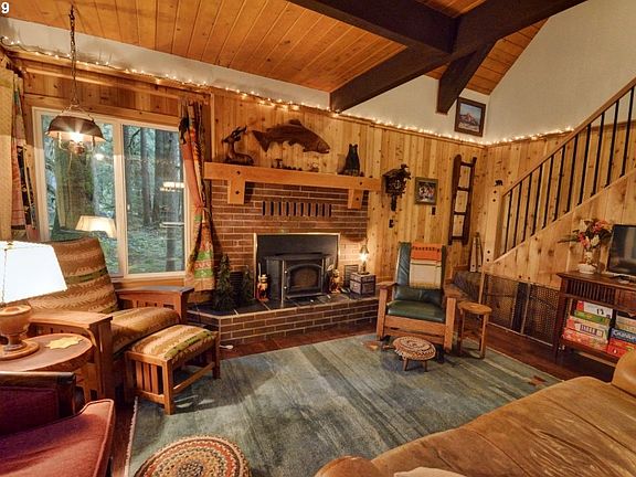 Zig Zag Riverfront cabin where you can watch the Zig Zag River flow by from your living room! Super sturdy well build whimsical cabin with three private bedrooms. High vaulted ceilings and a beautiful fireplace with a warm cozy wood-burning stove. Wood floors, open floor plan, and lots of windows!! Huge beamed ceilings. Spacious river deck with a parklike setting on the river. Storage plus outbuilding. Leased land. Close to skiing!