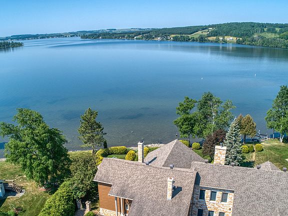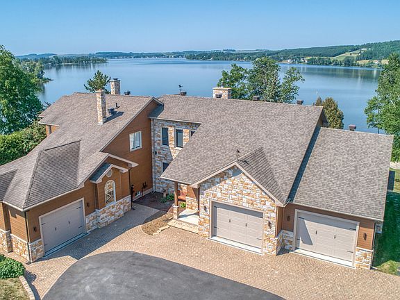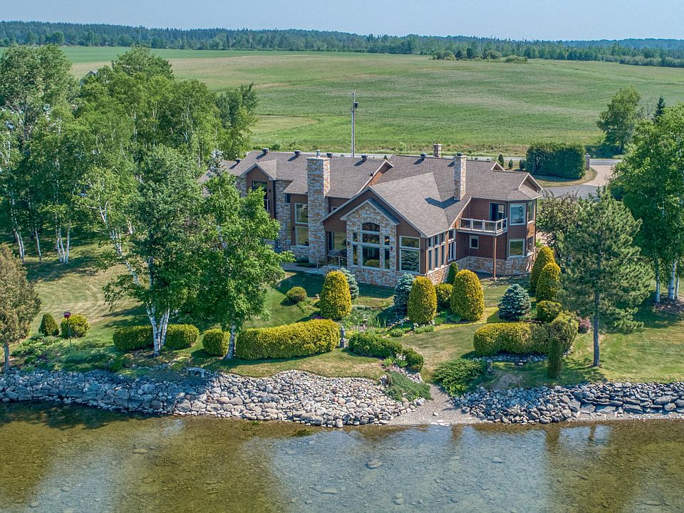 Le Château de l'ange built on the shore of Long Lake in Madawaska, Maine, is your opportunity to celebrate a life well lived. The luxury lake house built in 1996 and expanded and fully renovated in 2015 is a little bit of heaven here on earth. The luxurious lakeside home is 6350± square feet of elegant yet comfortable lakeside living. All details of the lake house were executed perfectly by the local craftsmen who built the home. Locally sourced cedar, maple flooring, and birds eye maple for the custom cabinetry blend well with the natural stone work that was sourced from local farmers' fields. Towering stone hearths on the first floor are gathering points to enjoy a glass of wine with some close friends and enjoy the expansive lake views from the lakeside windows. The kitchen with its custom birds eye maple cabinets, quartz counter tops, Subzero refrigerator and a Wolf induction cooktop will have any budding chef feeling right at home. The Butler's pantry is home to a pair of Thermodor convection ovens, a Blomberg refrigerator as well as ample storage in the custom cabinetry. The 3-bedroom home is three levels of luxury lakeside living. The fully finished basement has a billiard room, wet bar, and home theater area. Adjacent to the billiard room is a weight room with mirrored walls and cork flooring. There is a wine cellar that can accommodate nearly 1500 bottles of your favorite wines, at the perfect temperature naturally. The ground floor is home to the kitchen, dining room, library, and sunroom, all of which overlook Long Lake and the green fields and forest of the St John Valley.