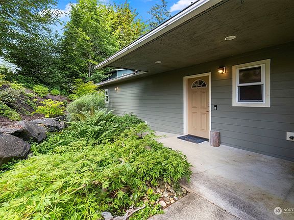 Relax and unwind in your peaceful, private, furnished waterfront home tucked away on a small island, with views from house & huge sunny deck! Watch bald eagles, herons & seals catch fish. The wind-protected cove is perfect for swimming, kayaking, fishing, cooking s'mores, BBQing, or just watching sunsets. The backyard features a huge deck with water views, dining table, hot tub, 2 floating docks. The open concept main floor features beautiful hardwood floors & a fireplace; kitchen with quartz, beautiful cabinets with pull out shelves, tons of storage & island. The main floor primary bedroom with ensuite, large closet and slider to covered back deck. Bonus "tiny house" with queen bed & 3/4 bathroom + a treehouse that overlooks the cove.