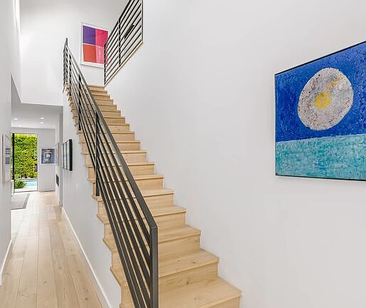 Dramatic contemporary in hot Melrose District. Step into a warmly atmospheric setting filled with sweeping windows that wash the home with light. Beyond the soaring two-story entry, a single space holding living, dining, family and kitchen areas unfolds, surrounded by leafy views. High-style touches include a long prep island with seating, a floating see-through wall fireplace, and graphic black metal window and door frames throughout. A bedroom/office completes this level. Up the striking skylit stairway are two more bedroom suites and a laundry. The primary retreat features a high, peaked ceiling and refreshing treetop views. Its indulgent bath includes a soaking tub, steam shower and dual sinks. In the ultra-private backyard, a shimmering pool and spa are enhanced by a relaxing deck and dining area. The nearby pool/guest house holds a living room, kitchenette, bathroom and loft bedroom. A two -car garage completes the property. The address is minutes away from trendy Melrose shops and restaurants, and moments from vibrant destinations like Tartine Bakery, Sightglass Coffee, Mr. T, Gigi's, Osteria Mozza and Just One Eye. West Hollywood, Beverly Hills, Hancock Park, The Grove and more are minutes away. Your Hollywood home has arrived.