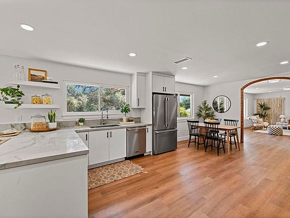 Privately tucked behind its own gated entry, this fully fenced single story ranch home offers both seclusion and convenience, with easy freeway access and Felicita Park just outside your doorstep. Set on nearly three quarters of an acre of flat, usable land, the property balances timeless charm with thoughtful updates. Inside, original tile archways and a cozy fireplace create a welcoming atmosphere, while the open concept layout allows for effortless flow between living spaces. The kitchen is a true highlight, featuring high end Frigidaire Professional appliances and pull out shelving that makes organization simple. It is a space equally ready for a quiet morning coffee or lively gatherings with family and friends. The private primary suite feels like a retreat of its own, complete with a luxury en suite and direct access to a secluded patio where you can enjoy fresh air and quiet moments to start or end your day. Two additional bedrooms and a secondary bath with dual sinks provide comfort and functionality for everyone. The home also features a fully finished two car garage that adds both polish and practicality. Just off the garage, a climate controlled office provides the perfect space for work, hobbies, or storage, while an in ground safe offers additional peace of mind. Outdoors, mature shade trees and fruit trees frame the landscape, while the chicken coop adds a playful touch of country living. If you have ever dreamed of collecting fresh eggs in the morning, the coop is already here to make that dream a reality. With owned solar keeping energy costs low, plenty of room to spread out, and the secondary access point perfectly suited for a future ADU, this property offers endless possibilities. This home blends privacy, character, and convenience in one of Escondido’s most desirable locations, where everyday living feels both practical and a little magical.