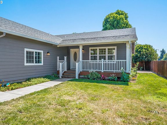Welcome to your dream home! Charming property boasts 3 beds, 2 full bathrooms, and 1,320 sqft of living space. Vaulted ceilings create an open and airy space, while the front covered porch is a great place to relax at the end of the day. Inside, you'll find a beautiful island in the kitchen, complemented by built-ins, including a kitchen pantry. Modern amenities like a built-in microwave, dishwasher, and disposal make daily tasks a breeze. Stay comfortable year-round with the forced air heat pump with central air. Outside, the fenced yard offers a safe play area, and the sprinkler system keeps the lawn lush and vibrant. Bonneville power easement to the west assures privacy. Double car garage finished and unfenced driveway offers ample parking and storage space. Nestled in a friendly neighborhood, this home is conveniently located near Bethel 52 district schools, parks, shopping centers and major transportation routes. With thoughtful design and meticulous maintenance, this home is a true gem. Don't miss the chance to make it yours! Schedule a visit today and envision your perfect life in this lovely property.