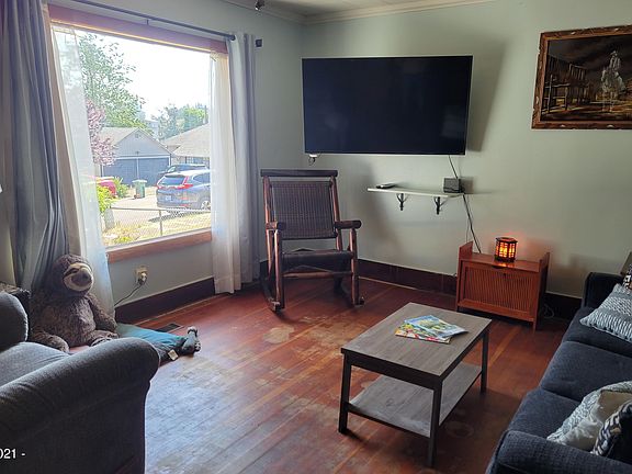 Enjoy this 1920s home & nearby Yaquina River, fun at the park, farmer's markets & all that Toledo has to offer. This family home still maintains its 20's charm but awaits your personal touches. Home lives large w/its comfortable LR w/picture window letting in the sunlight & adjacent crafts room/office/den. The heart of the home is the dining room where family can gather. Large Master BR w/AC & master Bath. Laundry room w/a ton of storage leads to private fenced yard, garage & 1 bedroom unfinished apt above.