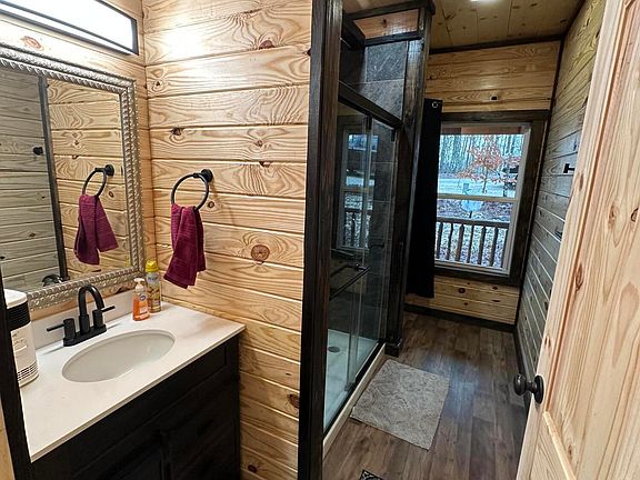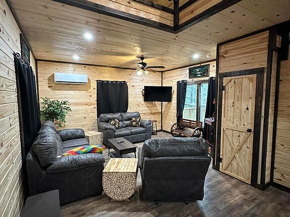 Step inside to discover a warm and inviting living space with rustic décor, a fully equipped kitchen, and a cozy living room perfect for unwinding after a day of exploring. Outside, enjoy the serene surroundings and stunning views from the porch, complete with seating to soak in the natural beauty.