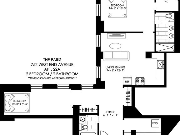One block from 1/2/3 96th St. Train Station!Nestled high on the 22nd floor, unit 22A features:- Sundrenched ,1000+ sft renovated 2 bed /2full bath apt. w/ in-unit Bosch washer dryer- Straight forward floorplan, solid wide plank wood flooring as shown in pic. - Open kitchen with plentiful cabinetry/storage& full size stainless steel appliances & Bosch dishwasher!- Plentiful custom built oversized + walk-in closets- Email on-site leasing agent Eva Zheng your inquiry with phone # for more immediate response. Sometimes replies end up in spam mail, kindly refer there if you don't see replies w/in 12 hours of sending your message.Building Features:- 24/7 Doorman and Concierge- Package Room- Live-in Super and On-site maintenance staff- Shared Roof Terrace- In-building gym & children playroom- In-building storage units and bike storage- Shared Laundry on every Apt. floor levelTransportation:We are located literally LESS THAN A BLOCK from the local 1 and express 2/3 trains at 96th St, and 4 blocks from the B/C trains! A brief 9-10 minute train ride to Columbia University! Next door to Imagine School of Swimming NYC!Location:The neighborhood is our unspoken amenity. Just a short walk to Riverside Park and Dinosaur Playground, a brief stroll to Central Park, steps away from West Side Market, Whole Foods, and some of New York's most notable private and public schools (including Columbia University, Barnard, and The Calhoun School.) Nestled quietly a block away from all the popular shopping, restaurants, and nightlife of Broadway!