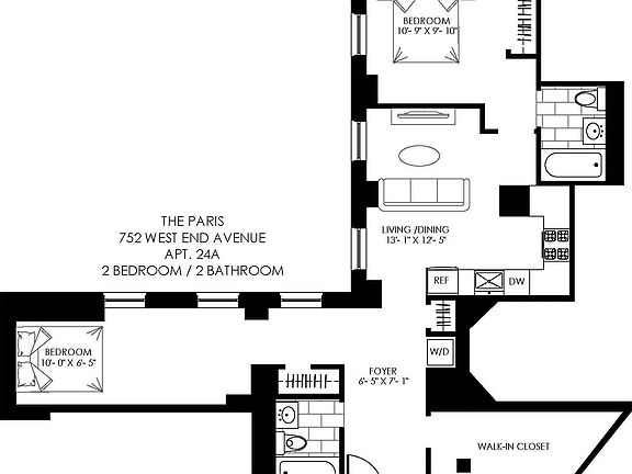 All Showings Are by Appt. Only!No Fee Rental | Best in Class Location ! Less than 1/2 Block from 1/2/3 Express 96th Street Train StationOriginally established in 1925 as Hotel Paris, The Paris New York is now modern full-service doorman no-fee rental building for discerning Upper West Siders. This Upper West landmark currently offers an array of beautifully renovated inventory that range from studios to 4-bedroom homes.Presenting unit 24A, this top-floor home features:Spacious hi-floor 1000 SQ.FT. 2 Bedroom w/ 2 Beautifully Renovated Full Bathrooms with marble basketweave tiles & Duravit/ Moen fixturesIn-Unit Bosch Washer/DryerOpen Kitchen equipped w/ Custom Liebherr Paneled Refrigerator/Freezer, Full Size Bosch Dishwasher, Full size stove & ovenUpdated double paned windows for solid exterior noise insulationPlentiful Built-in Storage and Multiple Finished Walk-In ClosetsHerringbone white oak flooring and millwork molding through-out!*Contact on-site leasing agent Eva Zheng for more info today!*Include your phone number for more immediate responses for inquiries.*All online inquiries are answered within 12 hours (excluding weekends/holidays), please check the spam mail folder if you don't see the response in your main inbox.Building Amenities & Location:24 Hr. Doorman Attended LobbyOn-site Maintenance Staff & Live-in SuperLess than 1 block away from 1&2/3 Express from 96th St. train stationLocated centrally! One stop via 1 train to Columbia University, less than 2 stops via 2/3 Express to Time Square and under 3 stops via 2/3 Express to 34th St. Penn Station!Brief 10 min. stroll to Central Park & less than 1 block from Riverside Park & Dog RunsPet friendlyA/C units are provided w/ Apts.Shared Laundry on all apt. levelsIn-building gym, children's playroom, and resident outdoor terrace w/ grillLocated next door to Imagine School of Swimming & Childrens Art Class
