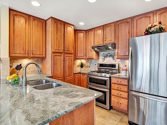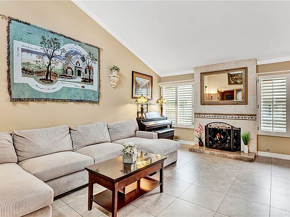 Upgraded single-story Country Road beauty w/remodeled kitchen and baths, gorgeous polished travertine flooring, open floor plan, only steps away from one of two HOA pools,all in one of most highly desired communities and school districts in OC! Starts w/Elegant polished travertine flooring all the way up the stairs & thru-out the living space, then into light & bright living room w/ soaring vaulted ceilings,Dual pane vinyl windows,plantation shutters, Crown molding,all anchored by a fantastic fireplace w/travertine hearth.Amazing kitchen:Exquisite granite counter slabs w/breakfast bar, stainless steel sink,high-end fixtures,large pantry w/ pull outs,KitchenAid five burner range w/ stainless steel vented hood,extra large baseboards recessed lighting & beautiful wood cabinetry.Wonderful formal dining room w/ lighted ceiling fan & "walls of windows". Massive master bedroom w/travertine flooring,vaulted ceiling & a triple wide mirrored wardrobe slider with organizers.The master bathroom is exquisite w/more granite counters,dual sinls,wood cabinetry,newer fixtures & walk-in shower w/beautifully tiled walls. Hallway bathroom is remodeled w/new fixtures,granite counters,tile walled shower w/designer tile in-lays & large soaking tub.Secondary bedroom is large w/lighted ceiling fan & pulldown ladder to large attic space.Extra large two car garage(almost third tandem space) w/ organizers & built-in storage & workbench.Fantastic patio w/ sitting area,brick pavers & gardening area.A GEM!
