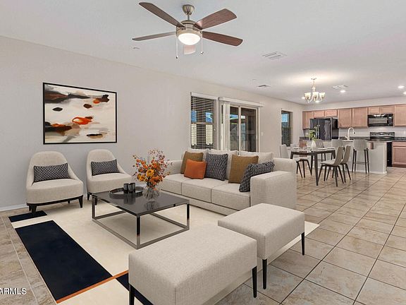 Built in 2018 by KB Homes, this MOVE-IN READY ready home offers an open-concept, great room floorplan with 3 bedrooms + a den & a split-master layout, FRESH PAINT + tile throughout. The kitchen features a large center island with breakfast bar, a pantry & granite countertops. Enjoy a low-maintenance backyard complete with artificial turf & an extended covered patio. Situated within Villas at Sonoran Ridge, this community includes a pool, park & HOA maintained front yard landscaping. Perfectly located close to shopping, dining & US60.
