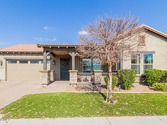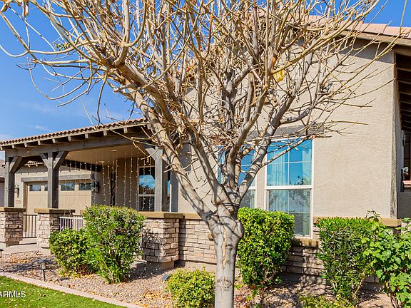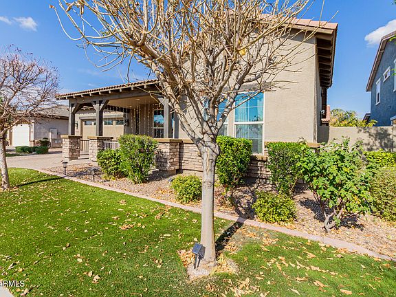 The search is over! Discover this beautiful 5-bedroom home w/a 3-car garage, stone accents, & a welcoming front porch. Be amazed by an impressive interior boasting an inviting living room, formal dining room, & a modern great room enhanced by surround sound & multi-sliding glass doors that open to the back patio. Well-appointed kitchen offers recessed & pendant lighting, abundant cabinetry, a prep island w/a breakfast bar, granite & quartz counters, tile backsplash, & high-end stainless steel appliances such as a wall oven & cooktop gas. Don't miss the cozy breakfast nook! The primary retreat showcases plush carpet, an ensuite w/two vanities, a make-up desk, a garden tub, & a walk-in closet. Spacious backyard includes a covered patio, pergola, fire pit, & a soothing pond. Act swiftly!