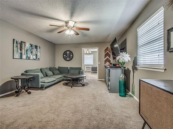 The open floor plan with classic charm welcomes you upon entry and flows into the main living space that connects to the perfect home office or play room. A well designed spacious kitchen with beautiful cabinetry, designer tiled backsplash, granite counters, and built-in appliances. Your dining is located off the kitchen area, and features a built-in hutch. Master suite is a true oasis, complete with a barn door leading to a private updated bathroom featuring an open vanity for extra storage, and a walk-in shower. It's amazing! Secondary bedrooms are large, with plenty of closet space too. Storm shelter in the garage floor. Improvements: Roof replaced around 5 years; HVAC system updated 4 1/2 years ago. Welcome Home!