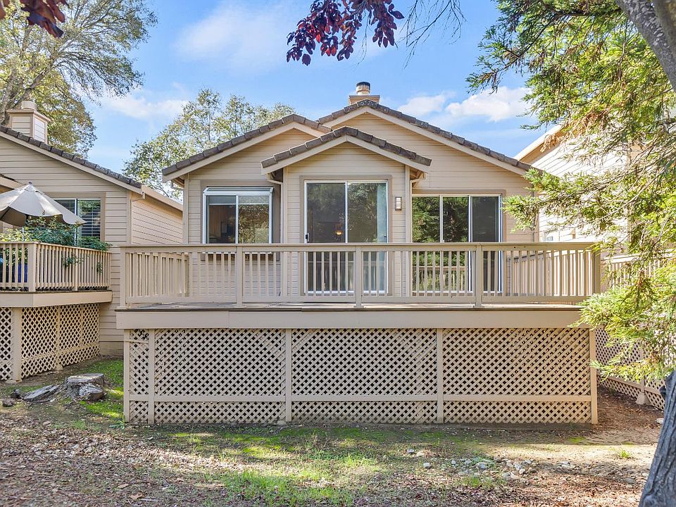 Welcome to Oak Crest Village, one of the area's most desirable pricvate communities where comfort and connection meet. This beautiful single story 2 bedroom, 2 bath home is designed for effortless living with vaulted ceilings, modern Scandinavian inspired new flooring, an airy open floor plan, and large gathering spaces perfect for entertaining or hosting family and friends during the holidays. The inviting living room with a modern circulating fireplace flows seamlessly into the dining area and kitchen, creating a warm and open feel throughout. Step outside to the private back Deck an ideal spot for morning coffee, a weekend barbecue, or a quiet evening under the stars. Situated directly across from the community clubhouse, you'll enjoy easy access to a heated pool, relaxing spa, and well maintained tennis courts, making every day feel like a getaway. Oak Crest Village offers the perfect blend of serenity and convenience just minutes from local shopping, great dining options, and everyday amenities, and only 15 minutes from everything Sacramento has to offer. Experience the lifestyle, location, and ease that make this home a true standout!