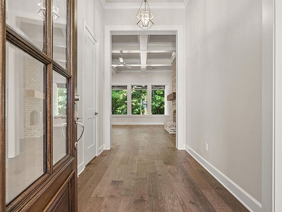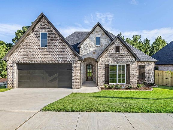 Come see this beauty by JCC Custom Homes in Oak Hollow at Hadley Court! This 3b/2.5 Bath/2 Car Garage home has a fabulous layout. Upon entering the spacious foyer you will walk into a large Great Room that overlooks a large covered patio with a backyard that backs up to a greenspace! The Great Room with gas starter fireplace opens up into the Kitchen with quartz countertops, large island with seating, stainless steel appliances, gas cook top and walk-in pantry. The dining room is open to the kitchen and has a large window letting in great natural light with views of the back yard and treescaped greenspace. Laundry room has a sink and quartz counters. The Primary Suite is very nice size and also has a backyard view and the bath with a walk-in shower, soaker tub, his and her vanities and make-up vanity and huge walk-in closet are going to be one of your favorite places to relax and unwind! Two good size guest rooms with walk-in closets and a very nice guest bath with double sinks and a tub-shower make this the perfect home for a family or anyone. Engineered wood floors throughout the home with tile in the baths and laundry are beautiful and very durable. Close to Fresh by Brookshires and many other shops and nice restaurants that you can walk to make this a wonderful place to call home!