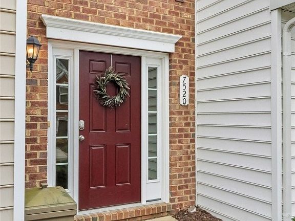 Welcome to 7520 Washington Arch Dr. in the desirable Liberty Trace community! This 1848 square foot Townhouse features 3 bedrooms, 2.5 baths, a 1 car attached garage, and an open concept floorplan. On the exterior, you will find a concrete driveway, rear patio, low maintenance exterior, and this home backs to the common area, walking paths, and tennis courts in the community. On the interior, you are greeted by the large foyer featuring tile flooring. Down the hallway, you will find a half bath and a spacious laundry room with tile flooring, cabinets, and shelving. The spacious kitchen features tile flooring, GRANITE countertops, STAINLESS appliances, a raised breakfast bar, and is open to the dining area and the living room. The dining area features tile flooring and is open to the kitchen and living room. The living room features carpet and a ceiling fan and is open to the kitchen/dining area. Upstairs you will find the spacious primary bedroom featuring carpet, a ceiling fan, and a HUGE walk-in closet with a built in closet kit. The primary bathroom features a separate tub and shower(both with tile surround), a raised height double vanity, and vinyl flooring. Rounding out the upstairs are two spacious bedrooms with ceiling fans and large closets, along with a nice hall bathroom. This home is conveniently located just minutes away from restaurants, shopping, and other amenities. It is also very convenient to get on Route 360/295 for an easy commute to anywhere that you need to go. Come see all that this home has to offer today!