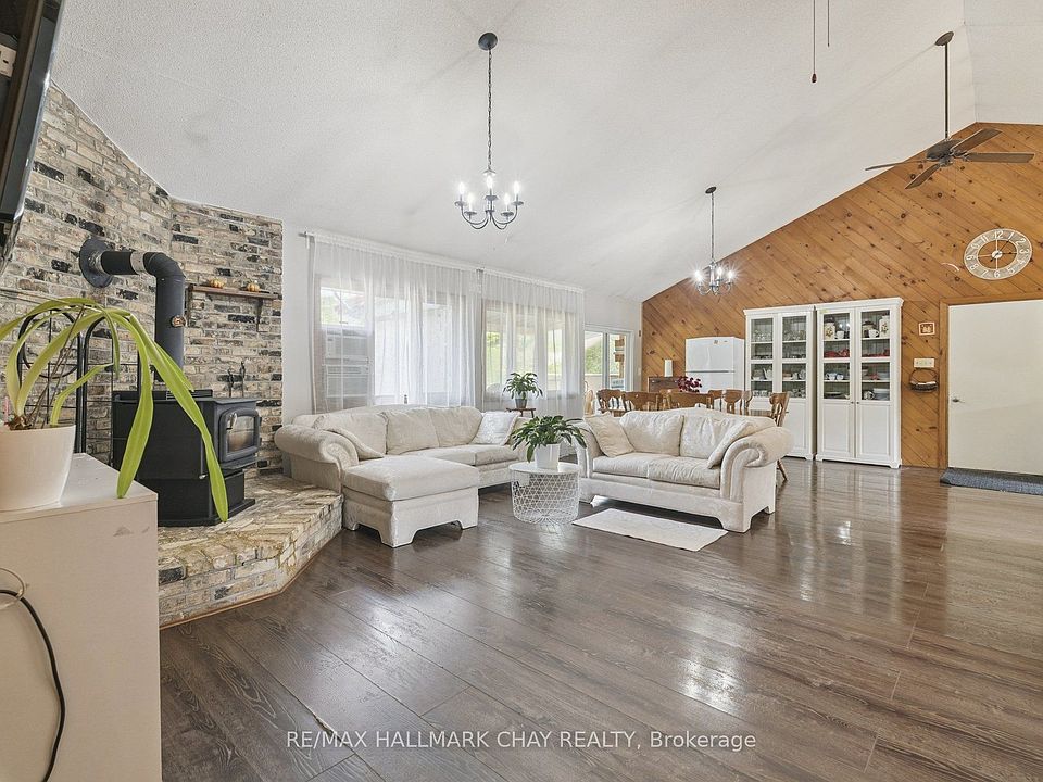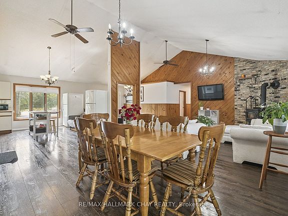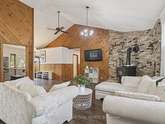 Charming 1.84-Acre Bungalow With Multi-Family Potential!Set On A 200 400 Ft Lot In Peaceful Essa Township, This Home Offers Privacy And ConvenienceMinutes To Schools, Hospital, Shopping, Golf And The Nottawasaga River Trail. Metal Roof, Extra-Wide Drive And An Oversized 2-Car Garage With Loft/Lift Potential. A Wrap-Around Deck And Mature Trees Create A Cottage-Like Setting. The Open-Concept Main Floor Showcases Vaulted Ceilings, Wood Accents, Laminate Floors, A Wood Fireplace, Bright Kitchen With Eat-In Area, And Enclosed Porch Walkout. The Primary Suite Features A Walk-In Closet, 5-Pc Semi-Ensuite And Private Deck Walkout; Three Additional Bedrooms (One With Laundry & Walkout) Complete The Level. The Partially Finished Basement Boasts ~10 Ft Ceilings, Three Separate Entrances And Garage Access Ideal For In-Law Or Income Suite. Essa Zoning Supports Up To Two Additional Residential Units (ARUs), Subject To Approvals. A Rare Blend Of Rural Tranquility And Nearby Amenities Perfect For Multi-Generational Living Or Investment.