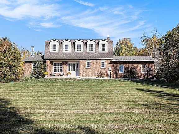 Welcome to 7521 Fourth Line Road! This stunning hobby farm spans 34.5 acres of private land, offering a perfect blend of outdoor space and modern comfort. The property features a custom-built, contemporary family home from 1985, with approximately 2,200 sq ft of inviting living space above grade. The home's main level showcases a spacious living room with a warm wood fireplace and a bright family room also featuring a wood fireplace, ideal for gatherings and entertaining. Oversized windows flood the interior with natural light, highlighting the hardwood flooring throughout the main and second floors. A practical mudroom off the garage includes laundry facilities, providing convenience and organization. The classic brick exterior and covered front entry add charm, while two large patio doors lead to the backyard, seamlessly integrating indoor and outdoor living. Upstairs are four bedrooms, including a primary suite with a walk-in closet and ensuite bathroom, complemented by two full baths and a powder room. The finished basement offers a sizable rec room with vinyl plank flooring, perfect for family activities. The property's outdoor amenities include an in-ground saltwater pool installed by Mermaid Pools in 2010, a 19 x 11 pool shed, and interlock walkways and landings. A paddock features a 31 x 21 barn with two horse stables, all serviced by water and electricity, making this an ideal setup for equestrians. The land is dotted with mature trees and walking trails, providing a tranquil natural setting. A private well supplies water, eliminating water bills. Located just 10 minutes from Kemptville's amenities, this property offers a peaceful, country lifestyle with modern updates-an ideal retreat for outdoor enthusiasts, horse lovers, and families seeking space and privacy. Please visit the property website for full interior and exterior videos showcasing everything this property has to offer.