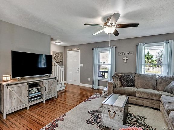 CHARMING HOME ON EXPANSIVE HOMESITE WITH 1ST FLOOR MASTER! Enjoy rural living at its finest with this full country front porch dream home. Sitting on an acre of land this home offers tons of privacy and seclusion. Featuring 3 BR, 2.5 BA, 1,455 sq ft, HDWD throughout, 1st floor master suite, private lot & loads of character to adore! Be welcomed by cozy wrap around porch inviting you into open foyer. Expansive family room offers eye-catching HDWD, ideal for enjoying quality time w/family &friends. This home was made to entertain w/an effortless flow from family room to kitchen &breakfast nook. Kitchen is a stunner w/SS appliances, built-in microwave, pantry &le storage space from gorgeous honey colored wood cabinetry. Bright &sunny morning room is an ideal spot for early morning breakfast gatherings w/the kids. 1st floor master boasts HDWD &ensuite bath w/separate vanities, tile floors &built-in storage shelves. Upstairs, find hall bath & secondary bedrooms each showcasing oversized closets, carpet & bay window. The massive yard is perfect to watch the kids or dogs run around and play! Property is conveniently located minutes from town & easy access to Richmond & Fredericksburg.