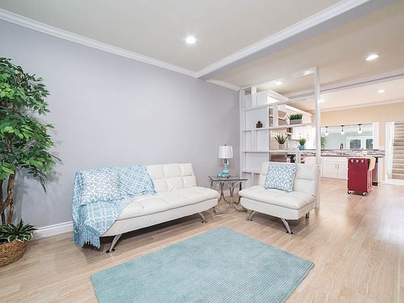 With over 2,200sqft, this completely remodeled designer home has all the features you are dreaming of! Charming living room bathed in natural light, a spacious office/playroom, & a full guest bathroom. The unique & modern kitchen offers stunning custom cabinets, elegant quartz counters w/full mosaic backsplash, dual basin stainless steel sink, & stainless steel appliances: refrigerator, stove, dishwasher, & microwave. The large formal dining room is decorated w/ a contemporary chandelier, & will accommodate any occasion. The bright & open family room is bathed in natural light from a multitude of windows w/ a set of French doors allowing easy access to the large backyard. 4 spacious bedrooms...Downstairs you will find a master suite w/ a private bathroom, & a good size guest bedroom. Upstairs you will find 2 master bedrooms w/ private bathrooms. All the master bedrooms offer walk-in closets. You’re going to spend hours enjoying the private backyard w/ enough space for a playground & an abundant garden or a refreshing pool. Central a/c to keep your temperature comfortable year-round. Energy efficient double pane windows will keep your utility bills low & the interior quiet. Recessed lighting, storage under staircase, crown molding, new wood laminate, tile & carpet flooring, drive-thru garage w/ full car access to the backyard and so much more!