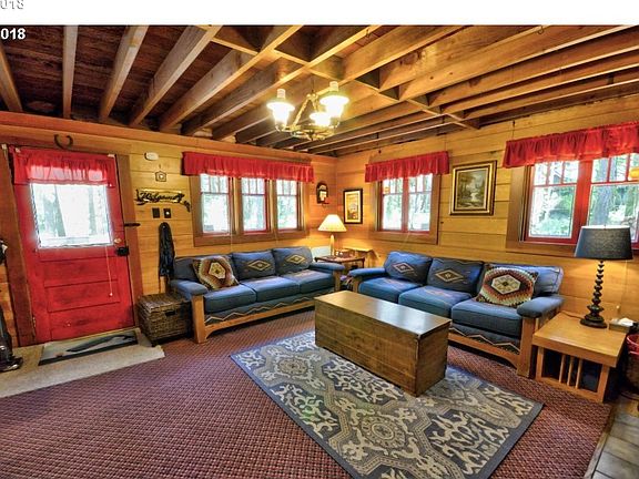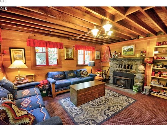 Zig Zag Riverfront getaway in the Mt. Hood National Forest. Classic cabin with everything you need. Knotty pine living room withbeams and stone fireplace with wood stove insert. Original paned windows. Huge riverside deck to enjoy the sounds of the Zig ZagRiver. Cozy country kitchen and even laundry facilities. Sleeping areas are upstairs with an open loft with lots of beds and a privatebedroom. Leased land, cash only, 1 hr. PDX.