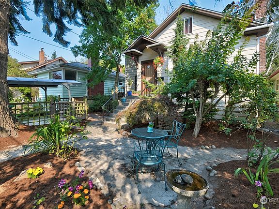 Price Improvement !! Classic 1924 Ballard Craftsman, 2.5 story 4-bed 1¾ bath + ½ bath. Main floor's 8’+ ceilings, 5’ mantlepiece, fir flooring & detailed orig woodwork give a grand feel to this efficient home. Attic finished 2007 w closets, alcove, vented skylight, French drs to Juliet b. w partial view to Magnolia. 2021 kitchen & bath updates - ceramic flrs, quartz counters, hand-tiled bath. 2019 solar panels w app gauge. Efficient fireplace insert & lined chmny. Fenced yard with rear deck, front patio, centenarian fir, 15’ back fence. Halfbsmt set up as MIL apt w 2017 carpets & semi-prvt entr. Most windows dble 2000, carport 2016, cellulose insulation & all new sewer 2018. Chicken coop. Prime location near downtown, Old Ballard, beaches.