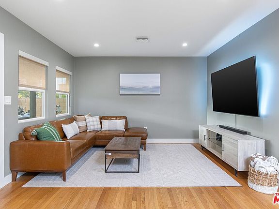 Experience luxury living in this fully remodeled 4BD/3BA smart home. Step inside to an open-concept design that seamlessly connects the living spaces. The bright and airy living room is bathed in natural light, flowing into a modern and recently updated kitchen featuring sleek countertops, custom cabinetry, and stainless steel appliances. Double doors lead to a spacious backyard, ideal for outdoor entertaining. The expansive primary suite also enjoys backyard access, has a walk-in closet and boasts a spa-like, en-suite bathroom with soaking tub, separate shower and dual vanities. A guest suite (the fourth bedroom), complete with its own entrance and kitchenette, offers privacy and convenience. The large and private backyard includes a lush grassy area and a detached structure, perfect for a home office or additional storage. The oversized and gated driveway can fit up to 6 cars and has a covered carport with Tesla charger. Conveniently located within walking distance of premier shopping and dining, and just minutes from NoHo Arts District and Burbank studios, welcome!