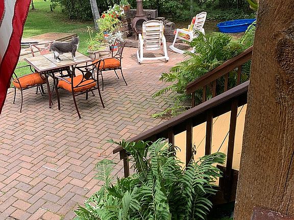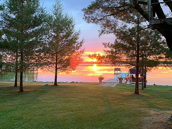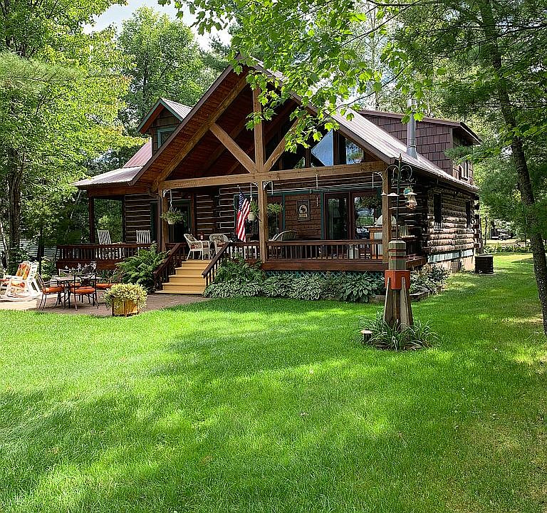 Cedar log home with professional addition in 2011. Open floor plan with vaulted ceiling In living area, open loft, Ben Franklin style gas fireplace, multiple ceiling fans, solid-core cherrywood interior doors, upgraded dual-pane windows throughout, metal roof, marble kitchen countertops, heated tile floor in master bathroom. Modern high-efficiency forced air furnace and central air. Has heated shop and also a heated changing room (for snowmobiling or swimming) with second built-in fireplace. Has garage space for 5 cars and additional space for toys of all sizes. Located in an area with high-speed internet.