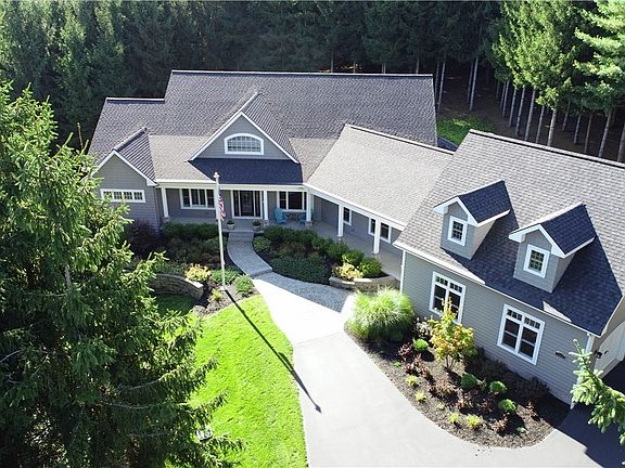 Discover Serenity in this Tucked Away Private Luxurious Masterpiece! With over 6,270 Square Feet of living space you can S-P-R-E-A-D O-U-T! Please watch the drone footage & 3D virtual reality tour which shows a lot more of the homes inspiration and architectural details. This masterpiece of design and craftsmanship features an open floor plan with high coffered ceilings in living room and basement entertaining areas. 20’ bifold Patio Door in Living room and outdoor patio living space. Which blur the lines between indoor and outdoor living with fireplace. Tremendous chefs kitchen with double islands, dual convection oven, gas stove 6 burner with skillet, 3 beverage & oversized refrigerator, walk in pantry, formal & eat in dining rooms! Too much to talk about see attached list!