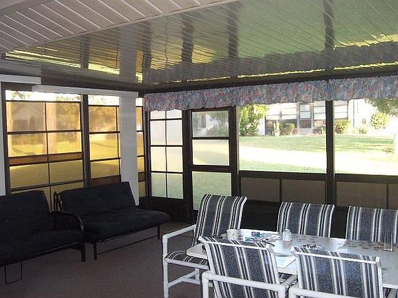 Large home in The Heather with 2 car garage, huge screened and enclosed lanai, extended living room with fireplace, walk in closets in both bedrooms and screened front porch. This property is high and dry and has indoor laundry facilities with a sink and washer and dryer included. Yard has irrigation and garage is extra wide with room for a workshop or workout space. Living room has vaulted ceiling and all rooms have hard surface flooring-new plank vinyl or newer ceramic tile inside with brand new indoor/ outdoor carpet in large lanai. Great home in terrific condition. This country club community has a golf course and pool which can be joined and a clubhouse easily rented by all homeowners. This neighborhood has mature trees and winding streets- just perfect!