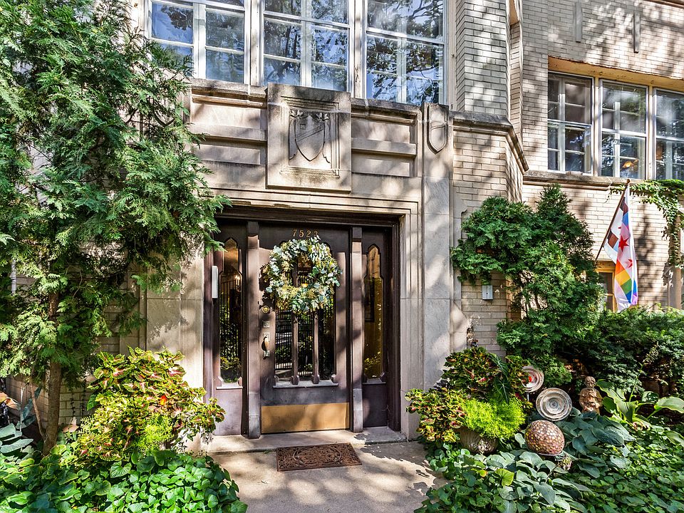 Welcome to a spacious home that is a vintage home lovers dream! Step inside and be greeted by gorgeous original woodwork and oak hardwood floors throughout giving so much warmth and charm. Enjoy a huge living room filled with natural light, highlighted by a decorative fireplace flanked by built in book cases. Entertain easily in the formal dining room with a butler's pantry with built-in wine fridge, that flows into the updated kitchen with stainless steel appliances. All three bedrooms are generously sized with great closet space, while the updated bathrooms blend modern updates with vintage character. Outside, relax in the shared garden seating areas in both the front and back of the building, plus take advantage of all the extra storage and building washer and dryer just one flight down in the basement. One garage space is included, and you're just steps from the Howard El and shopping. This one has the perfect mix of space, charm, and convenience-don't miss it!