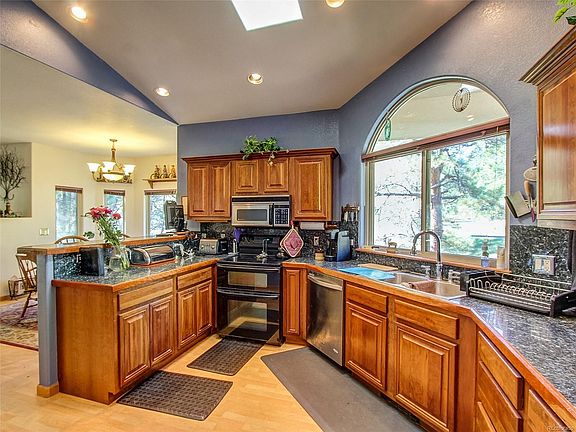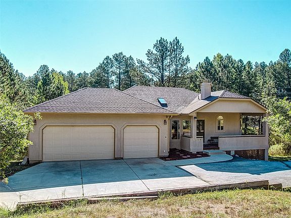 Cozy Ranch style home with walkout basement. Not too big-not too small- Just right. You are sure to enjoy this very private one acre lot with mature pines located on the corner of a quiet cul-de-sac. One of the few lots in this filing that actually backs to open space. 3 car garage has a newly poured concrete floor. Main floor has a very private master suite with back balcony access. Lower level has 3 additional bedrooms and great flex space for entertaining. Home heating system is zoned gas hot water heat that is efficient and healthy. It is very hard to find a moderate sized home in this area at such a great price. Price reflects the opportunity for the Buyers to do their own updates and personal touches. Great location close to Castle Rock, Shopping, Medical and Bear Dance golf course.