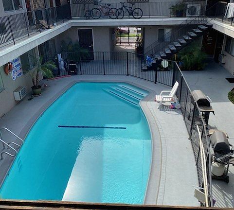 OPEN FLOOR PLAN AND SPACIOUS AND VERY CLEAN - LOWER LEVEL with PATIO, LARGE BEDROOM EASILY FITS A KING SIZE BED, WALL TO WALL CLOSETS, LARGE LIVING ROOM. ONE BATH WITH TUB, DESIRABLE AREA OF VAN NUYS CLOSE TO EVERYTHING - easy access to freeways, stores, schools and public transportation. Apartment is on the LOWER level, all wood floors (no carpeting), includes AC, Dishwasher, Stove, Microwave Oven, Garbage Disposal, new paint everywhere, remodeled kitchen (new counter), ceiling fan, gated complex Complex has 14 apartments, laundry room on premises, and POOL.